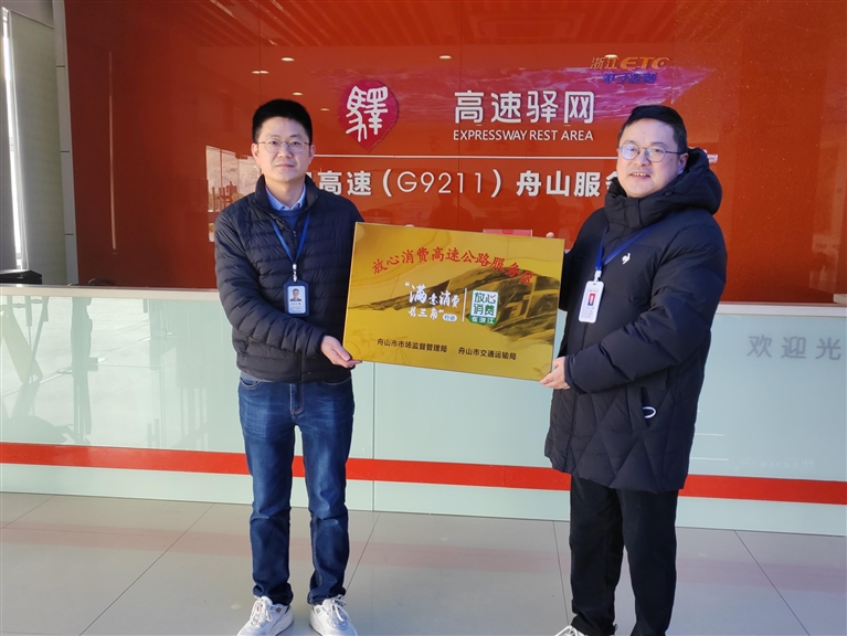 本报讯 近日,甬舟高速(G9211)舟山服务区被授予“放心消费高速公路服务区”称号,成为舟山首家放心消费高速公路服务区,为展示舟山形象和“放心消费在浙江”建设成果添一重要窗口。