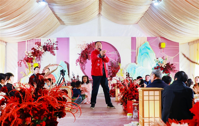 近日,定海区盐仓街道新螺头村里举办的一场婚礼上,76岁的洪国壮应邀上台“吼”起了铿锵有力的渔民号子,令宾客们大呼“听得过瘾”。
