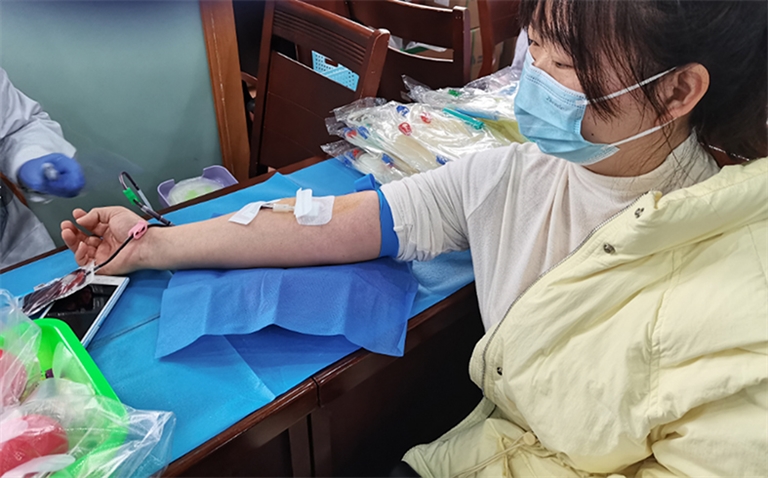 该公司员工来到指定采血点,在工作人员和志愿者引导下,有序填表登记、血压测量、血液化验、血液采集,为爱挽起衣袖,贡献一“臂”之力。