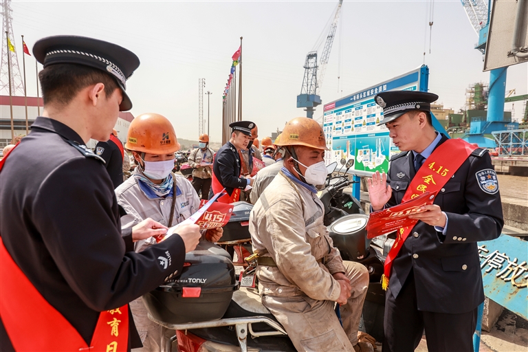 第八个“4·15”全民国家安全教育日即将到来之际,前天下午,舟山出入境边防检查站民警走进舟山市华丰船舶修造有限公司厂区,利用工人午休时间,向工人们宣讲国家安全相关法律,发放宣传册400余份,现场解答各类咨询50余次。