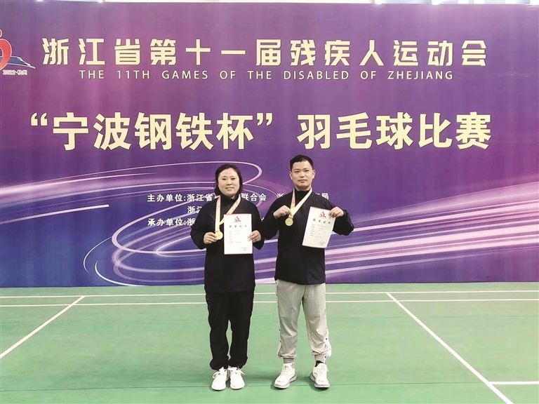 能为舟山争光应该是每个舟山人都有的朴素想法,像乐雨琳这样的职业运动员会有,像李冬梅和周杰这样的业余选手也会有。在此次浙江省第十一届残运会上,他俩合作拿下了羽毛球(下肢)混合双打冠军。虽然不是专业运动员,但他俩都为能赢得冠军、能代表舟山获得荣誉而感到自豪。