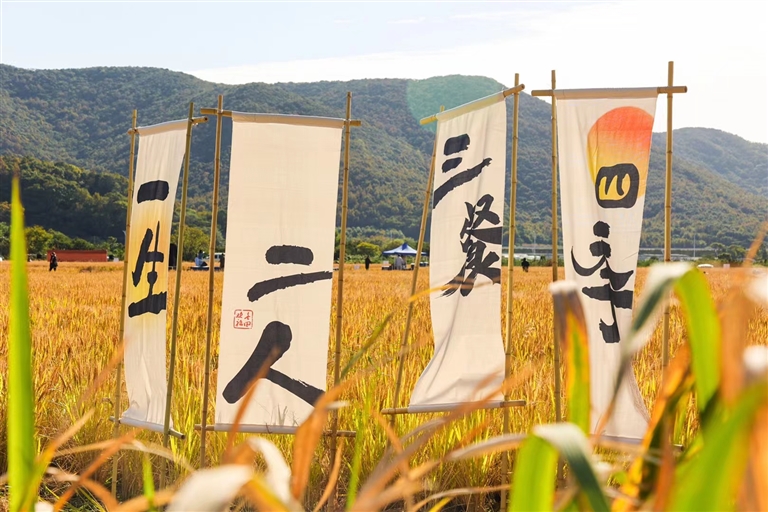 农田风光带来旅游效应,而旅游也反哺着农田。融合了普陀山禅耕文化的“福田”项目备受游客青睐,短短几日,“福田”稻米便全部售罄。