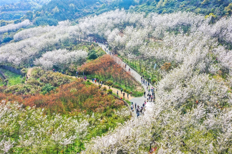 很多时候,一个地方的出圈需要等待一个契机。前段时间,一位摄影师在采风时无意间发现了山头的樱花林,用航拍技术将它拍摄下来制成短视频在互联网平台进行传播,为小沙樱花林出圈带来契机。