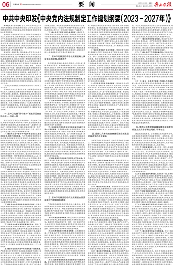 中共中央印发《中央党内法规制定工作规划纲要(2023-2027年)》