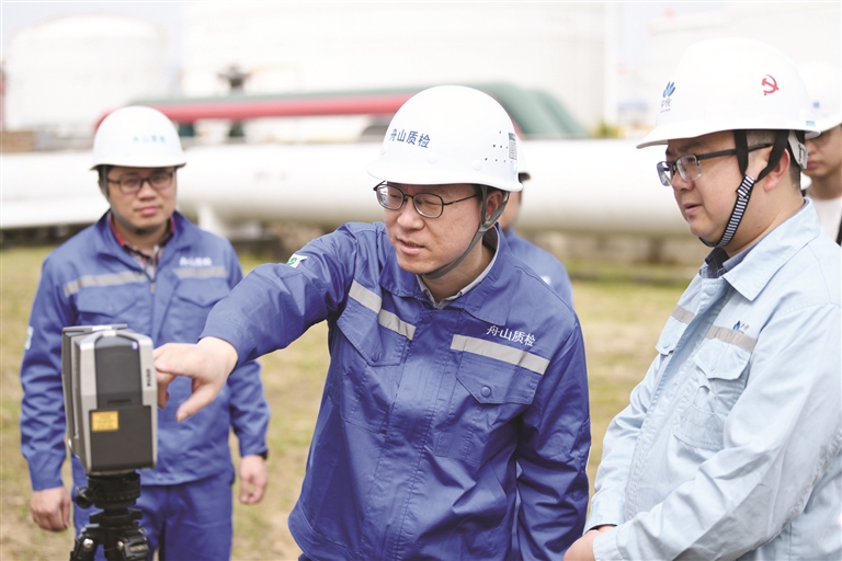 深耕计量领域,扎根项目现场,是陈贤雷,也是他所领衔团队的工作常态。就在节前一天,陈贤雷还带着团队,对中化兴中原油罐区罐体进行检测(见图)。
