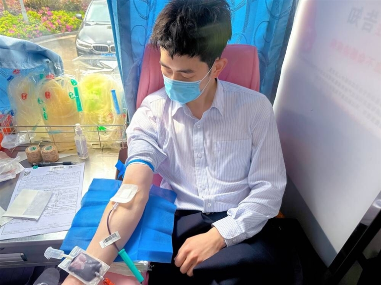 近日,绍兴银行舟山分行积极组织志愿者前往市中心血站进行无偿献血,共献血2400ml。