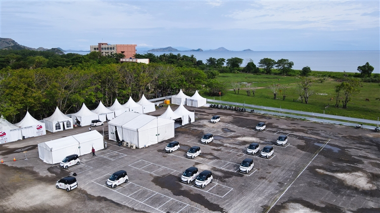 这是5月9日在印度尼西亚拉布安巴焦拍摄的五菱汽车东盟峰会服务营地(无人机照片)。 新华社记者 徐钦 摄