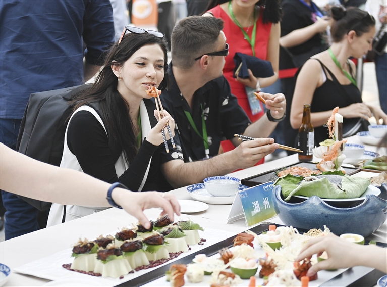当日,为期4天的“舌尖上的相遇—中东欧美食与‘味美浙江·百县千碗’”活动在浙江省宁波市江北区老外滩开幕,这是第三届中国—中东欧国家博览会暨国际消费品博览会的一项人文交流活动。5月16日至20日,第三届中国-中东欧国家博览会暨国际消费品博览会将在浙江宁波举行。 新华社记者 黄宗治 摄