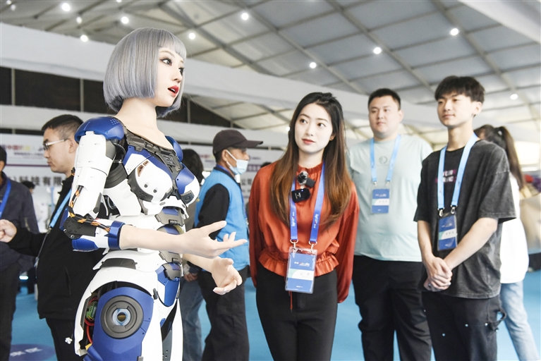 5月24日,机器人在峰会现场为观众讲解介绍。