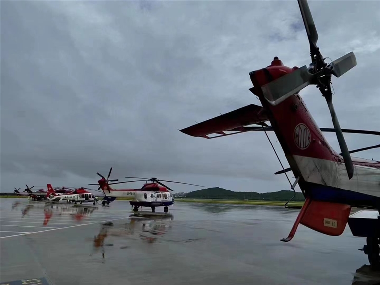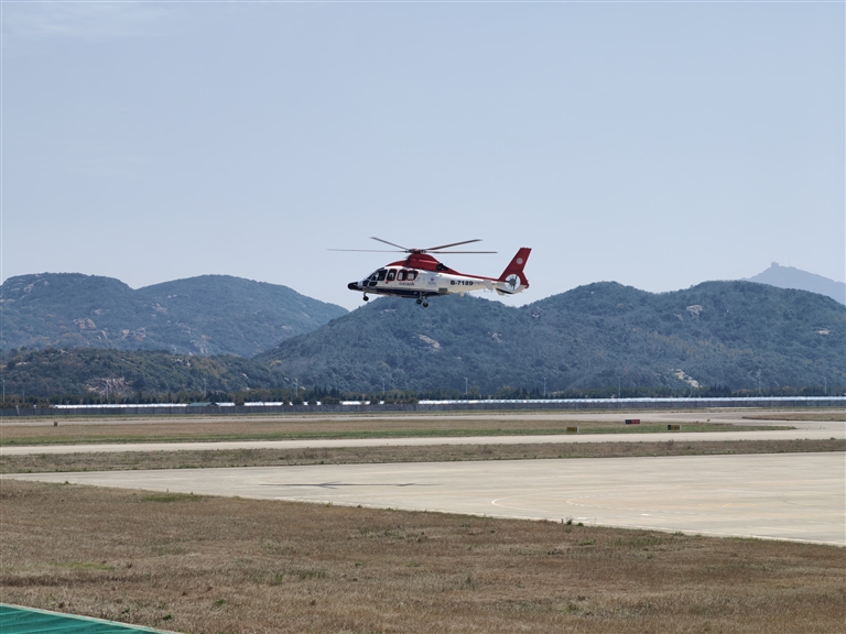 5月20日上午9时30分,伴随着螺旋桨的轰鸣声,一架直升机准点从普陀山机场起飞,前往目的地枸杞岛。