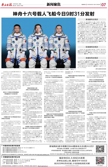 神舟十六号载人飞船今日9时31分发射
