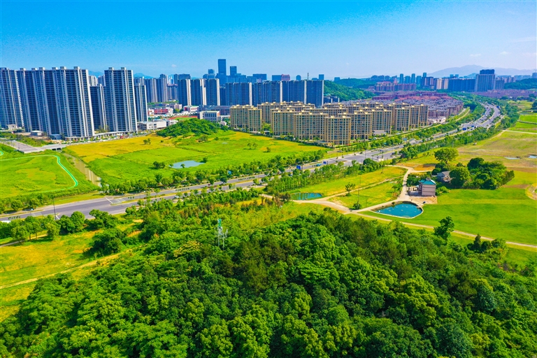 新城临长路靠近东西快速路一侧,一片巨大的草坪高低起伏,绿意盎然。该区域原先是闲置地块。随着“打开围墙”环境整治行动稳步推进,该地块经过平整和复绿后,成为一道靓丽的风景线。摄影 记者 张磊