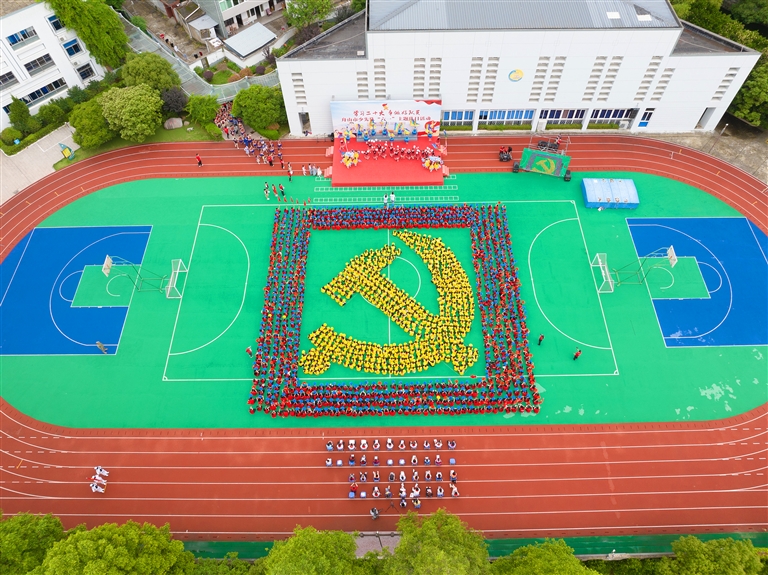 昨天上午,由团市委、市教育局、市文明办、市少工委联合主办的“学习二十大 争做好队员”舟山市少先队六一主题队日活动在定海小学举行,1500多个孩子齐聚一堂,共庆第73个“六一”国际儿童节。
