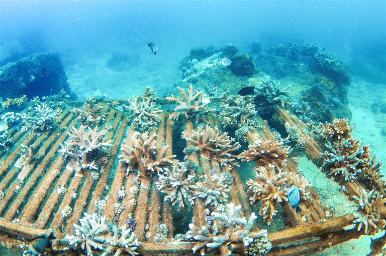 据了解,海南分界洲岛旅游区自2004年起联合海南省海洋与渔业科学院开展珊瑚保育工作,实施珊瑚移植等海洋生态修复工程。经多年保护,目前分界洲岛旅游区海域珊瑚覆盖率显著提高。