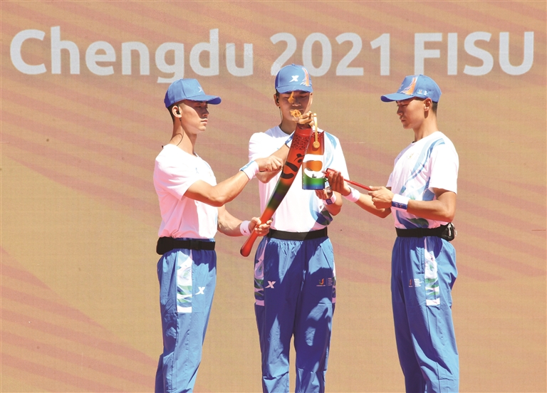 当日,成都第31届世界大学生夏季运动会火炬传递启动仪式在京举行。成都大运会火炬传递的主题是“奋斗青春·放飞梦想”,共有800名火炬手、100名护跑手参与。 新华社记者 任超 摄