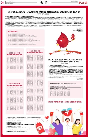 关于表彰2020-2021年度全国无偿献血表彰奖励获奖者的决定