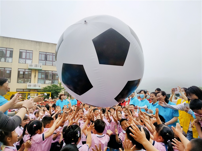 昨天,普陀展茅中心幼儿园师生举行了一场迎亚运趣味运动,喜迎杭州亚运会倒计时100天