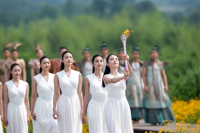 杭州第19届亚运会火种在良渚古城遗址公园成功采集