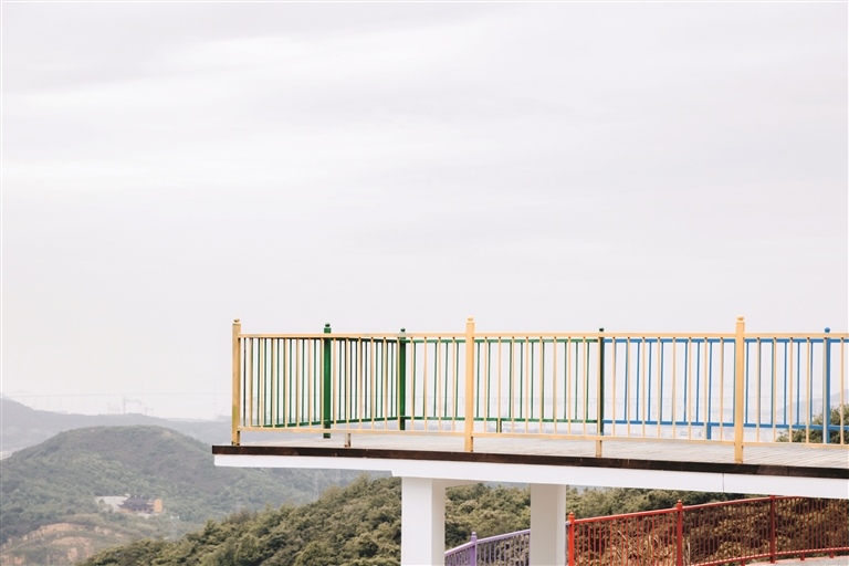 这里有小朋友喜爱的“彩虹”。S型的上山之路上,沿途的栏杆皆被涂为彩虹色,宛若在山林中飘扬的彩虹飘带,行走其中,脚步都不自觉地轻快起来。随手一拍,靓丽的颜色也非常“出片”。