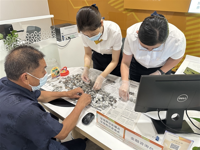 近日,一位老人抱着这一罐零钱来到温州银行舟山新城小微企业专营支行试着询问可否兑换整钞。该行运营主管热情接待,并带领工作人员经过1个多小时的清分、清点,顺利帮助老人完成兑换。