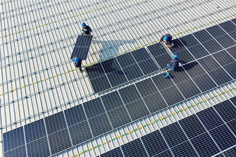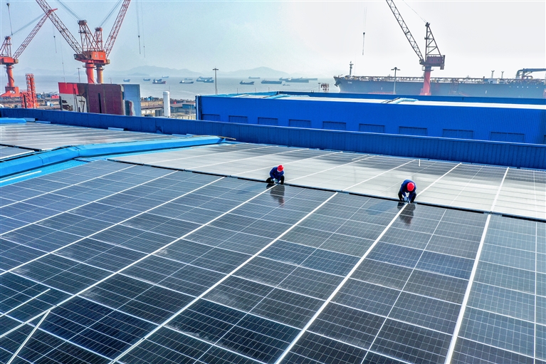 如果从天空鸟瞰嵊泗县境海岛,会发现无论是高楼还是厂房,不管是城镇还是乡村,只要有屋顶的地方,就会出现一片片光伏板。