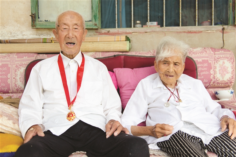 王阿苟(102岁)与胡阿彩(98岁)夫妇