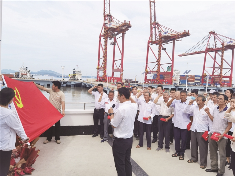 活动当天,50年党龄的老党员代表在中青年党员的陪同下来到宁波舟山港大浦口港区3号平台,在讲解员的解说下了解港区发展变化。