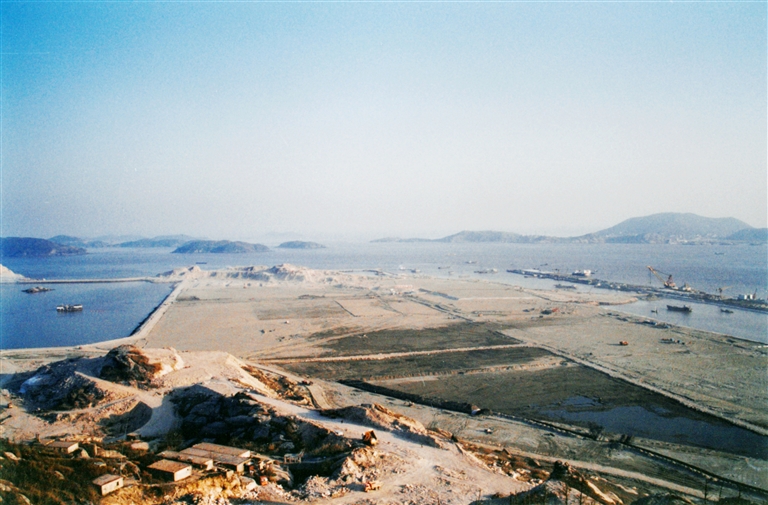 2003年,洋山深水港一期工程建设初期,码头尚未成形 通讯员 包仁泉 摄
