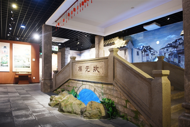 位于定海总府路舟山名人馆内的状元桥仿造模型