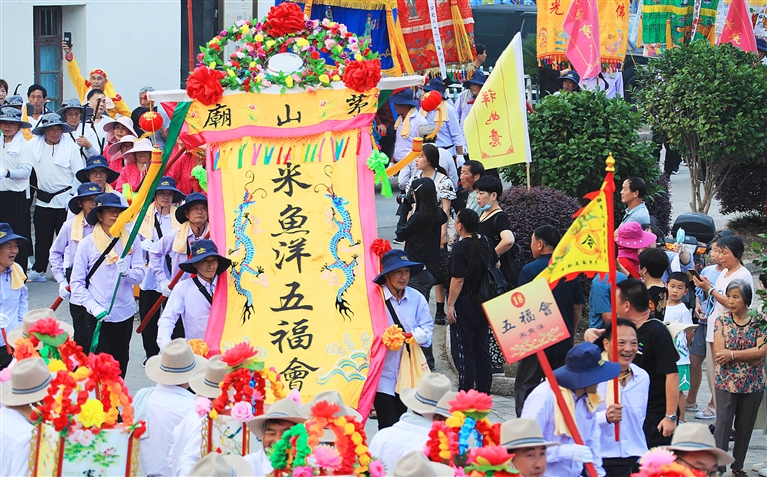 “桃花会”由群众自发组织、自行筹资举办。昨天凌晨,25支以自然村落为单位组成的“行会”分队,浩浩荡荡从茅山庙出发,计划用2天半的时间走遍桃花岛。队伍行进路上,展示各种各样的民俗表演,吸引了很多群众、游客驻足观赏。“小时候赶上过一次桃花会,这次听说活动重启了,我特地请了假回家来看。”桃花居民王雨璐说,“希望‘桃花会’能不断传承下去,桃花越来越好!”