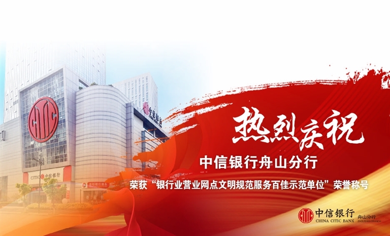 2023年6月30日,中信银行舟山分行营业部摘得“银行业营业网点文明规范服务百佳示范单位”桂冠,实现了舟山银行业在该领域“零”的突破,也是浙江省内唯一获此荣誉的股份制商业银行。