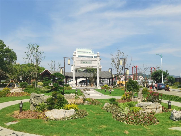 昨天,烈日当空,在定海东门车站东侧口袋公园仿古廊亭的阴凉处,几名市民正坐着休憩。作为我市新建的城市公园之一,该口袋公园总占地面积为1600平方米,其中绿化面积1000余平方米,为市民、游客提供了一个可游玩、可游憩的景观空间。