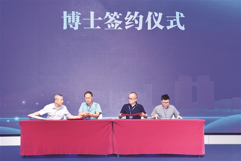 7月11日,在舟山群岛新区百名博士引荐会上,达成意向的博士与用人单位进行签约