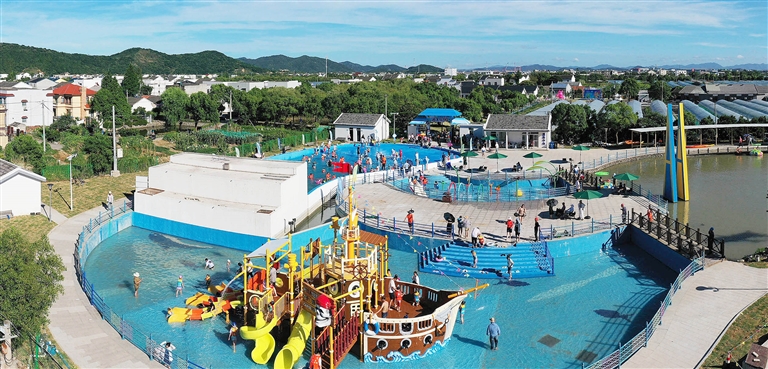 除了为村里增收,全新升级的水上乐园还让更多村民吃到了产业红利。“我从一开始办水上乐园就在这里当管理员,最开始工资一千多,现在越来越高了。家门口有份工作做,交关好。”65岁的村民黄开号指了指离乐园不到两百米的家笑呵呵地说。像黄开号这样实现家门口就业的村民有十多名。