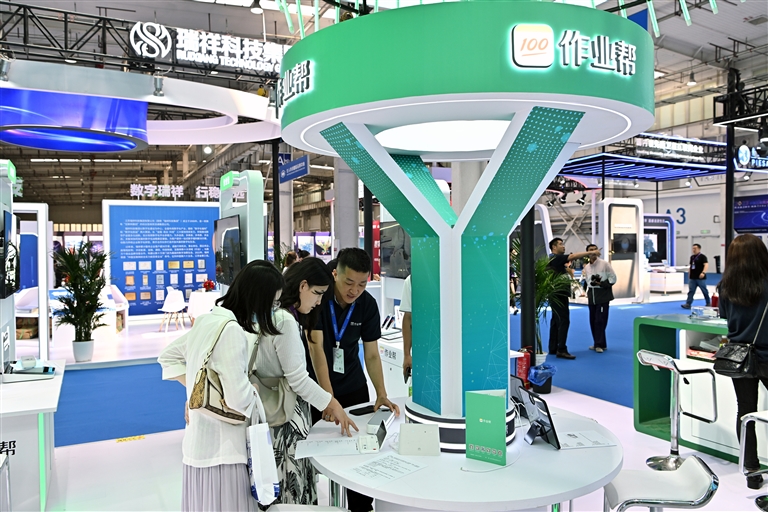 7月18日,与会者在大会设置的数字技术与应用成果展上了解互联网产品。