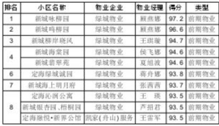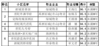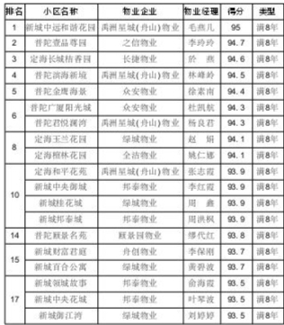 全市中心城区物业服务质量考评结果按三类分类排名,每类排名前15%及后15%的居民小区及物业企业名单公布如下。
