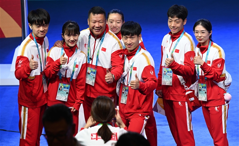 在中国代表团欢迎仪式上,村长鲜荣生致欢迎辞,村长刘筱柳与教育部学生体育协会联合秘书处秘书长、中国代表团执行团长刘立新交换礼物。中国代表团团长王嘉毅签署大运卷轴。国际大体联与中国代表团代表前往友谊林认领友谊树。据悉,中国代表团武术、田径、男子篮球、艺术体操等13个项目代表队及团部部分成员300余人已顺利入住运动员村。