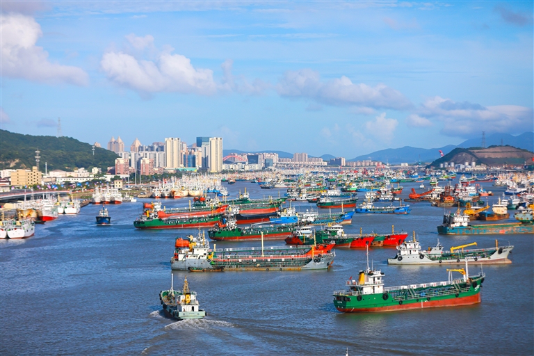 昨天下午,大批船只驶入沈家门渔港避风 摄影 记者 张磊