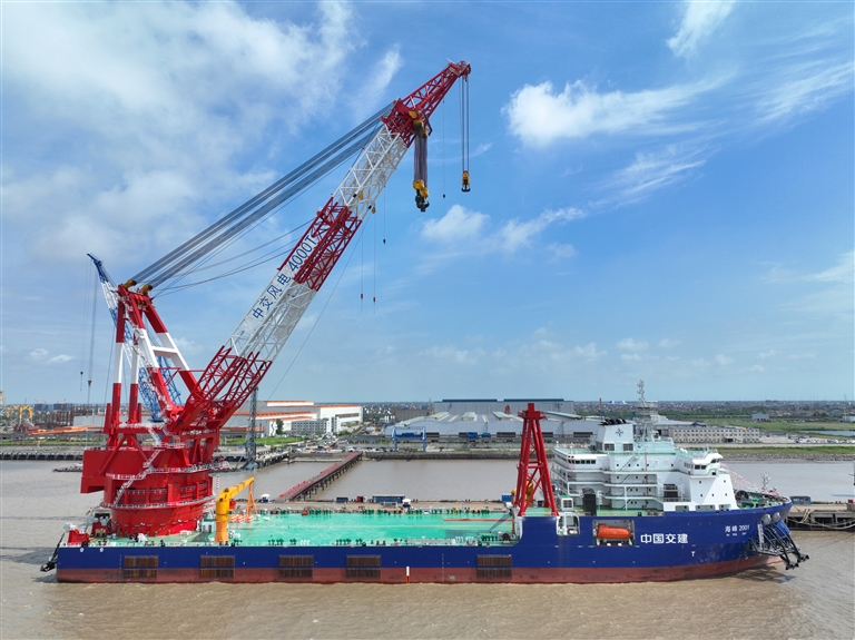 当日,中交海峰风电与振华重工联手打造的4000吨全回转起重船“海峰2001”在振华重工启东海工顺利交船。