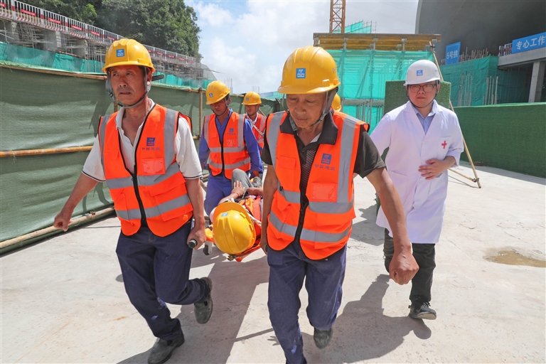 7月26日,由市住建局主办的防台防汛应急演练,在中建一局半升洞客运站工程工地举行,全市各建筑行业主管部门和建筑单位派员参加。本次演练以抗台抢险为模拟场景,检验和提升防汛防台应急处置能力。 摄影 记者 陈永建