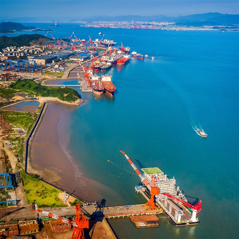 近年来,六横加快构建现代海洋产业体系,船舶修造业进一步向“智造”转型,中远海运重工完成全球最大LNG双燃料动力集装箱船修理业务,鑫亚船舶成为国内首家获GTT薄膜型LNG船修理资质的民营修船企业;综合能源产业持续发力;港口物流逆势上扬,六横港区跻身亿吨港区行列。