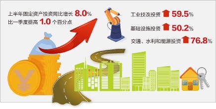 托底经济发展,固定资产投资被寄予厚望。我市经济半年度成绩单显示,1~6月,全市固定资产投资592.8亿元,同比增长8.0%,比一季度提高1.0个百分点。