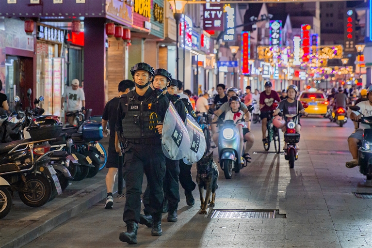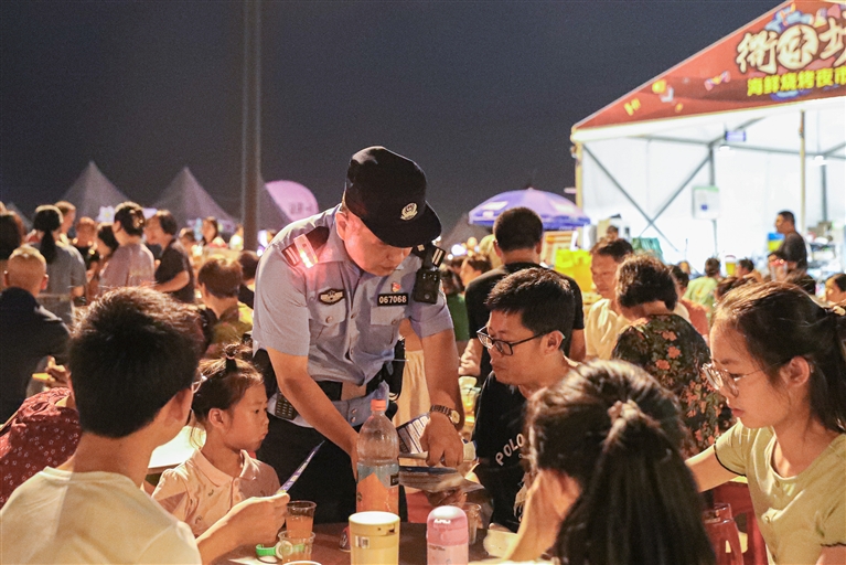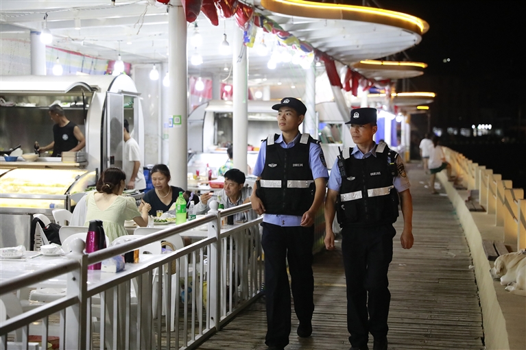 “这里的街面见警率真高!晚上出来玩感觉很踏实、很舒服。”夏夜海风清凉,坐在我市海鲜排档里的各地游客不时竖起大拇指,为巡逻经过的民警点赞。