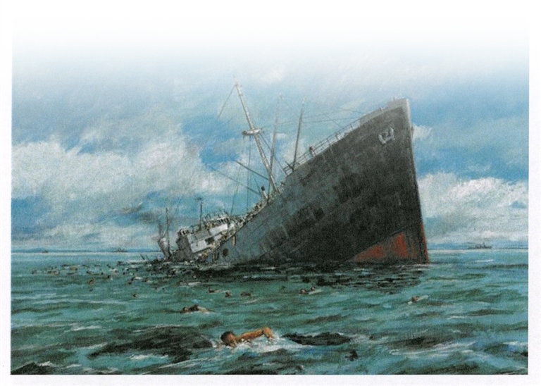 越来越多战俘冲出船舱后,顶着日军疯狂的扫射,跳进了茫茫大海中。