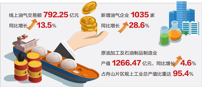 上半年,油气全产业链高歌猛进,新增油气企业1035家,同比增长28.6%,占新增注册企业的比重为45.9%,累计集聚油气企业12770家。原油加工及石油制品制造业产值1266.47亿元,同比增长4.6%,占舟山片区规上工业总产值比重达95.4%。下转第2版▶ ▶上接第1版