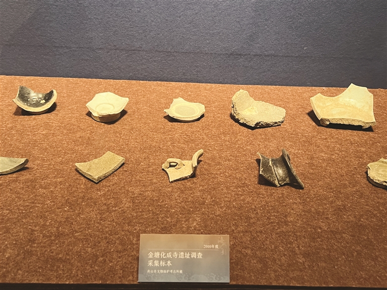 舟山发现的宋代瓷器并不少,但多为碎片。市文物保护考古所工作人员周兴分析说,古时的技艺有限,瓷器在制作时、运输时,容易碎裂,这些碎裂的瓷片被就近扔弃。越是人多,往来商贸越频繁,丢弃的瓷片范围越是广泛。舟山能在岑港“六国港”等地发现多处宋代瓷片的考古印记,更是从侧面印证舟山当时往来贸易的繁荣、人群的集聚。