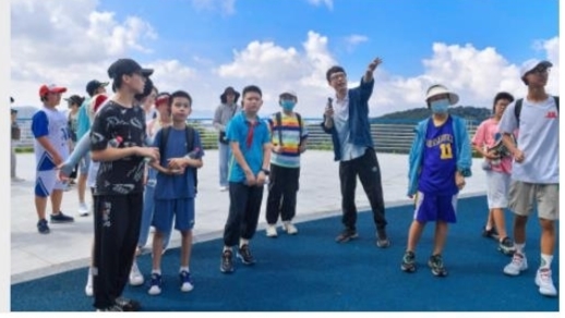 这个暑假,定海东海云廊成为全市中小学生研学打卡的热门地。莘莘学子漫步云廊,重走红色英雄路,饱览山海风光胜境,追寻励志求学故事,激发爱国爱乡热情。