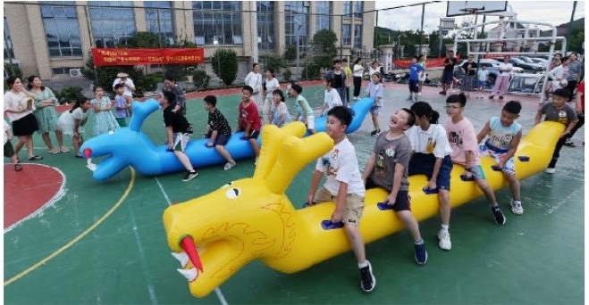 在东堠村文化礼堂,“我在礼堂学手工——暑期春泥手工扇DIY”活动吸引了20多对家长孩子前来参与,小朋友们自主创作自主涂色,既锻炼了其想象能力,又考验了动手能力。沥平村文化礼堂开展暑期档“我们的村运——喜迎亚运趣味运动会”活动,丰富了孩子们的假日生活,促进身心健康,锤炼意志。山潭村文化礼堂携手辖区优秀企业,共同开展“我们的村晚”暨礼堂伙伴结对演出活动,少儿舞蹈《彩虹的微笑》尤为出彩,通过阳光健康、积极向上的演出形式,展现金塘少儿艺术培训成果,丰富孩子们假期生活。