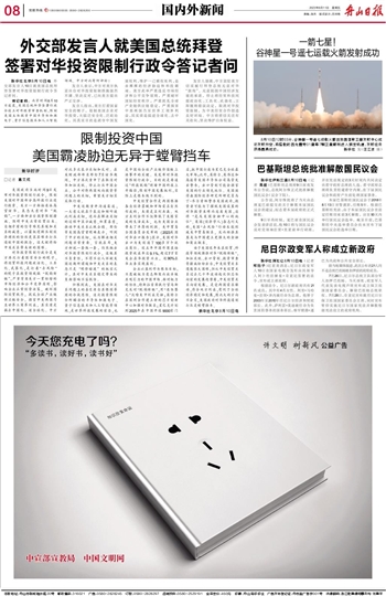 外交部发言人就美国总统拜登签署对华投资限制行政令答记者问