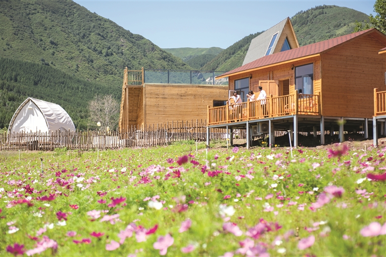 8月12日,游客在宁夏固原市泾源县大湾乡杨岭村的民宿聊天。